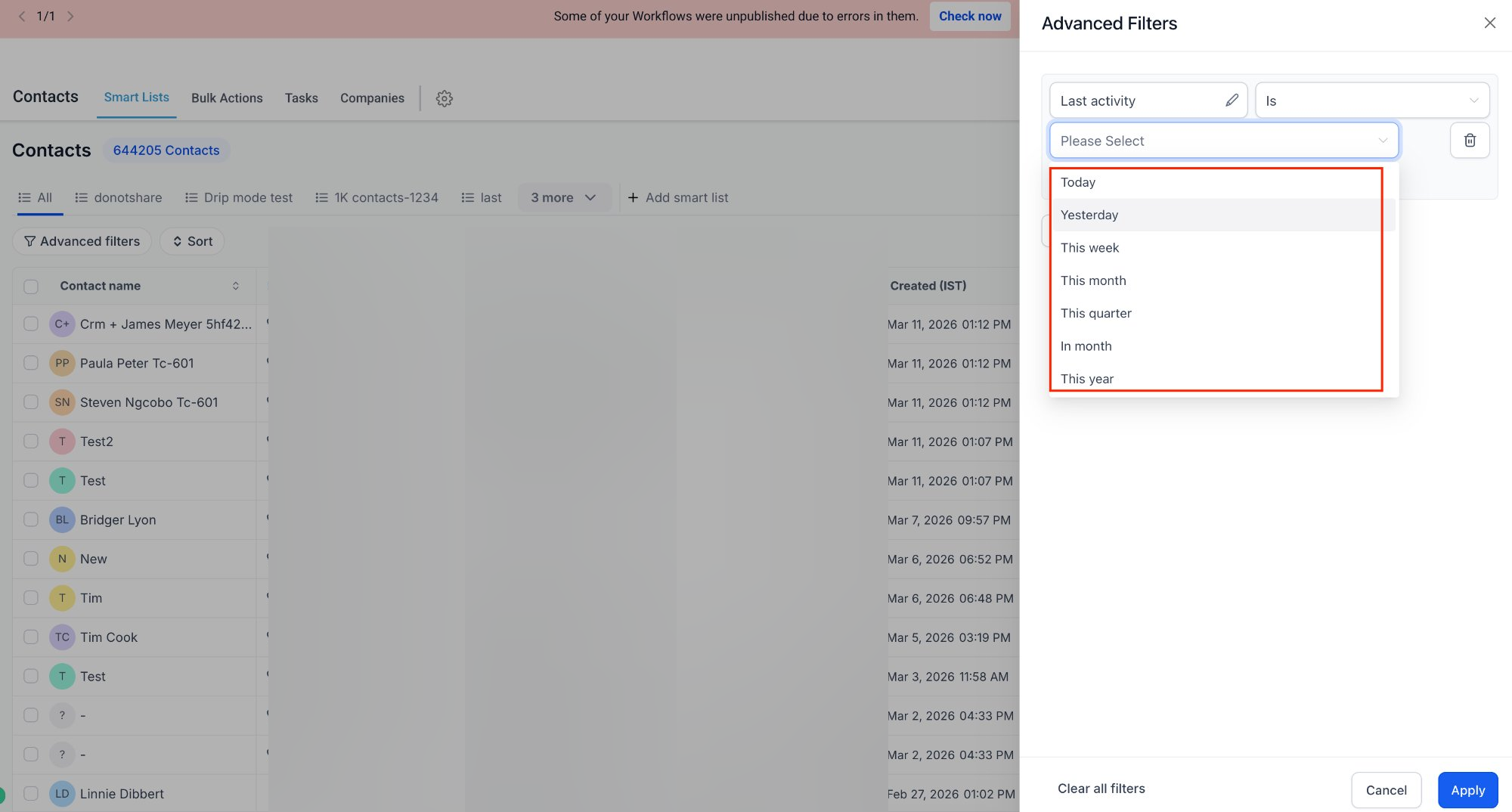 Advanced Filters 2.0 enhances how users filter data by adding new operators and standardizing filtering behavior. This allows more precise queries, better segmentation, and a more consistent experience when working with records across different sections.