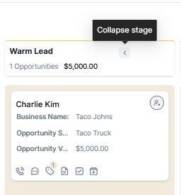Ensure you are viewing your pipeline in Kanban format. Select the option to collapse a stage you do not need to view.