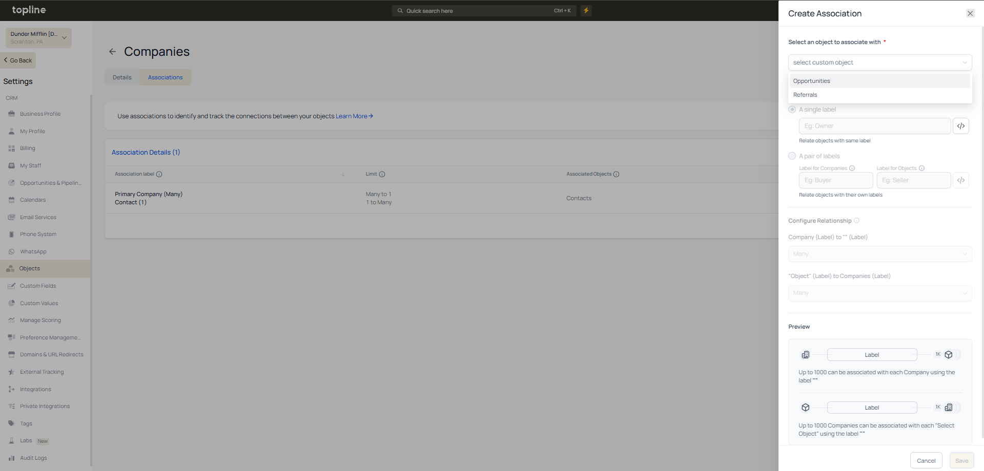 You can now link companies directly to custom objects and opportunities, creating stronger connections between records. This improves data organization, enhances reporting, and provides better context when managing business relationships.